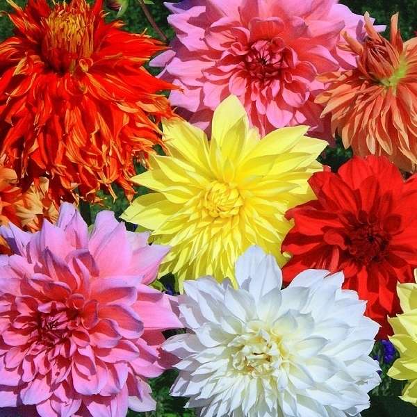 This mix delivers semi double to double blooms in a rich palette of whites, pinks, reds, oranges, lavenders, and golden yellows.